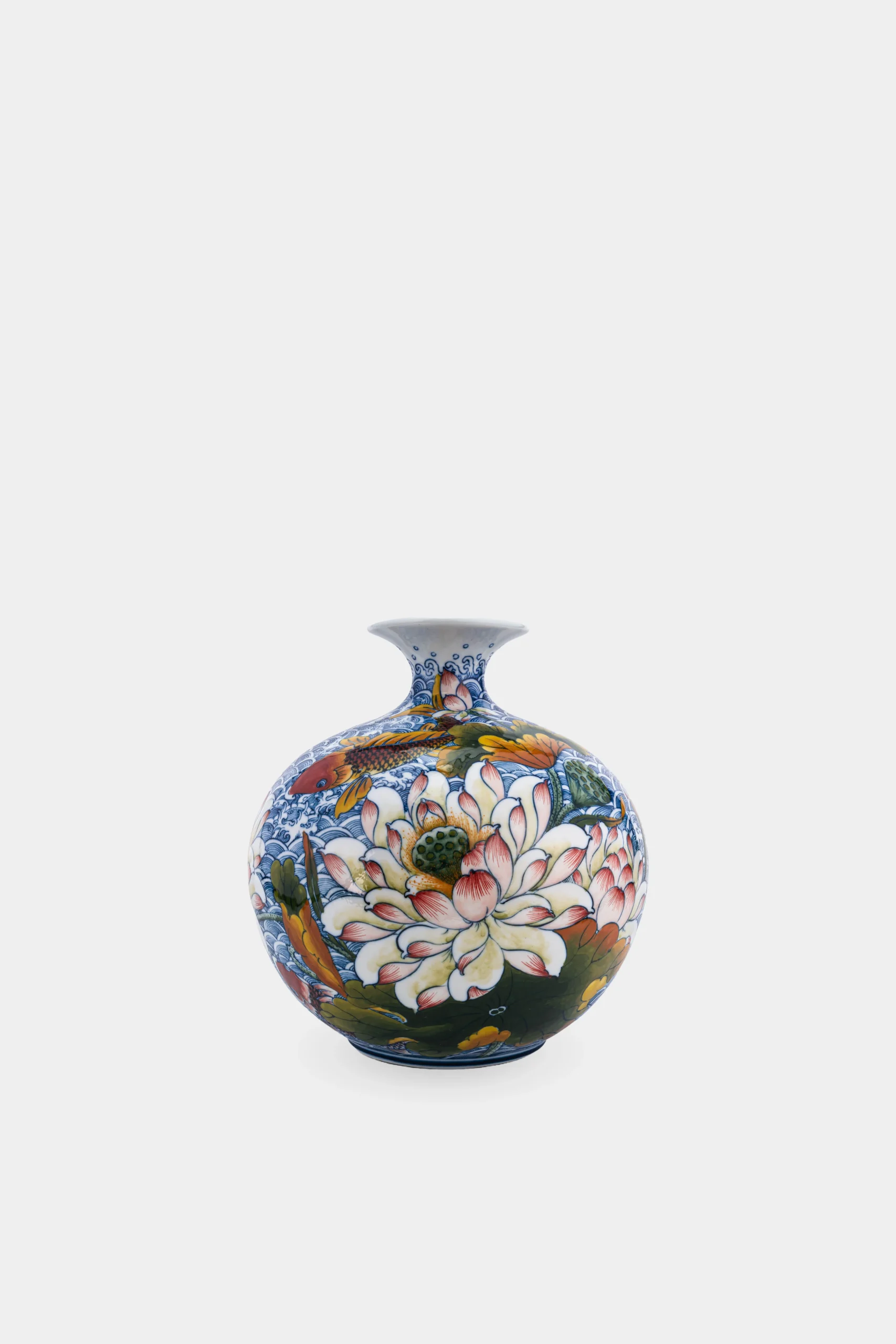 Bình tụ khí Đa Sắc Sen Cá nền Sóng Thủy